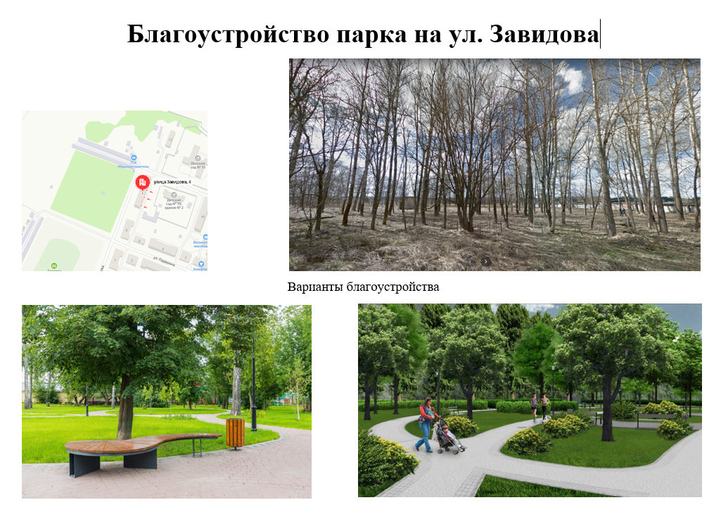 - Благоустройство парка на ул. Завидова;