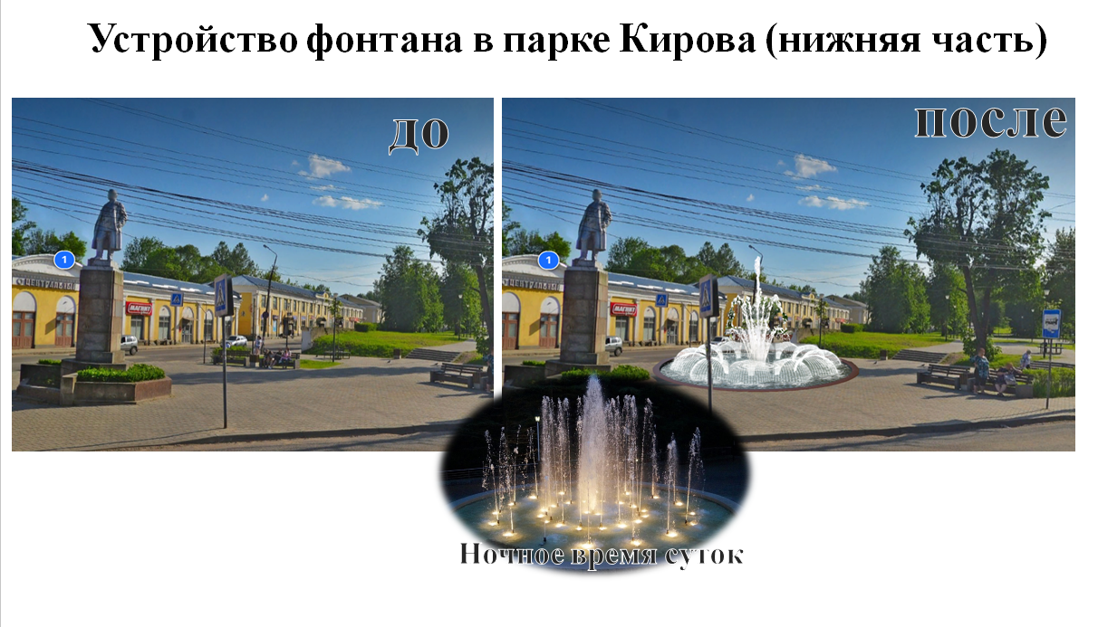 - Устройство фонтана в парке Кирова (нижняя часть);